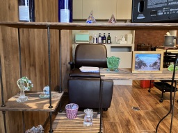 イスはいわゆる美容室で使われているイスではないです。カリモク60を使用してます。高さや背もたれの角度、クッション性などに細やかな配慮が良。そこそこな拘りの一つです。 |