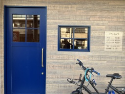 青い扉や窓枠は珍しく目印になるかと思いまして。レトロ喫茶店をイメージして開閉時にわざとガタガタ音がするようなちょっとした小技を使ってます。 |
