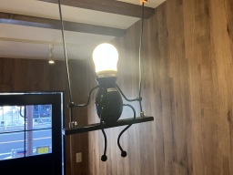シャンプー椅子の真上に設置してる照明器具です。椅子を倒した時に目に入るように、窓からも見えるようにしました。他にも照明器具にも遊び心を加えたら楽しいかと思いまして。